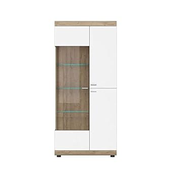 Highboard Vitrine Weiss Hochglanz Eiche Hell Wohnzimmer Schrank