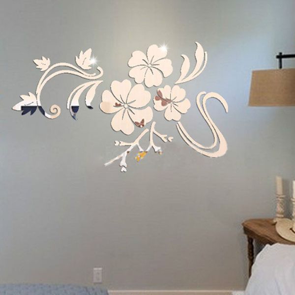Grosshandel 3d Blumen Rebe Muster Spiegel Acryl Wandaufkleber