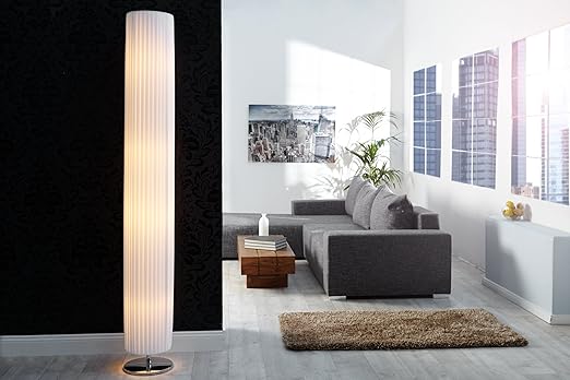 Stehlampe Weiss Chrom 200cm Rund Bauhaus Design Stilvoller Schirm