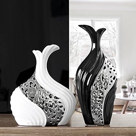 Paar Schwarz Weiss Keramik Vase Handwerk Wohnzimmer Deko