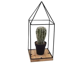 Unbekannt Deko Haus Industrial Metall Schwarz Holz Kaktus