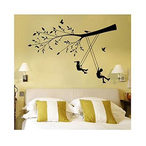 Swing Boy Und Girl Auf Dem Ast Wandaufkleber Vogel Wohnzimmer