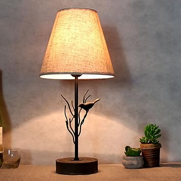 Raing Vintage Schmiedeeisernen Kleinen Vogel Ast Tischlampe Stoff