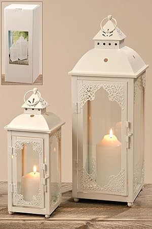 2er Set Innen Aussen Laternen Balkon Windlichter Metall Weiss Shabby