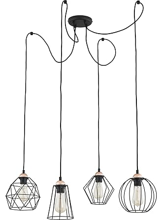 Pendelleuchte Schwarz E27 4 Flammig Drahtgestell Decken Lampe