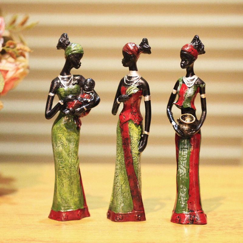 Grosshandel 3 Afrikanische Madchen Hauptdekor Harz Figur Volkskunst