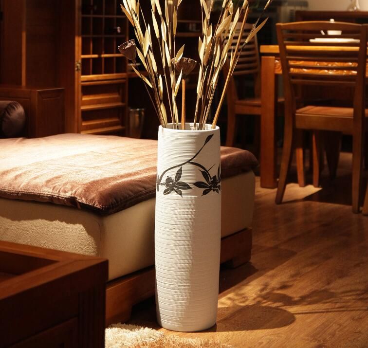 Grosshandel Hohe Vase Dekorative Boden Keramik Gerade Weisse Vase