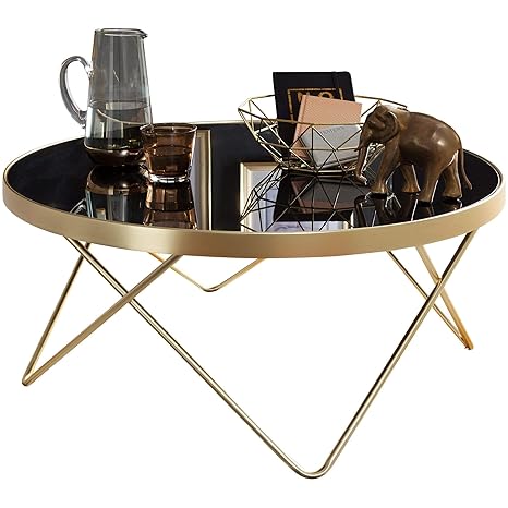 Finebuy Design Couchtisch Daina O 82 Cm Schwarz Matt Gold