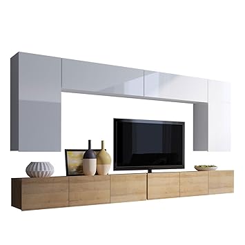 Ideal Mobel Moderne Wohnwand In Weiss Hochglanz Artisan Eiche Nb