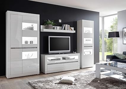 Trendmanufaktur Wohnwand 3 Tlg Weiss Weiss Hochglanz Beton Optik