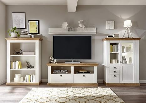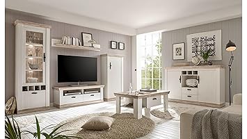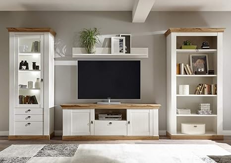 Justyou Samwell Wohnzimmerset Wohnwand Wohnzimmermobel Pinie Weiss