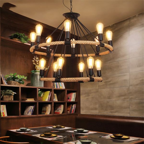 Grosshandel Retro Loft Seil Kronleuchter 6 8 14 Kopfe Schlafzimmer