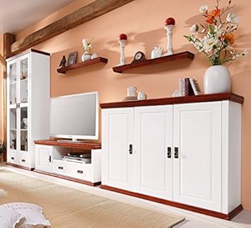 Pharao24 Landhaus Wohnwand In Weiss Braun Kiefer Massivholz 3