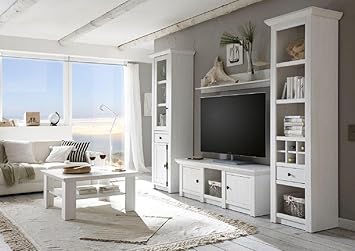 Landhaus Wohnwand Tyramus In Weiss Aus Fichte Massivholz 4 Teilig