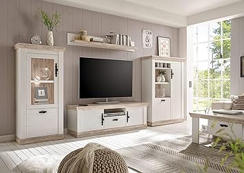 Wohnzimmer Wohnwand Flurencina In Weiss Kiefer Im Landhausstil